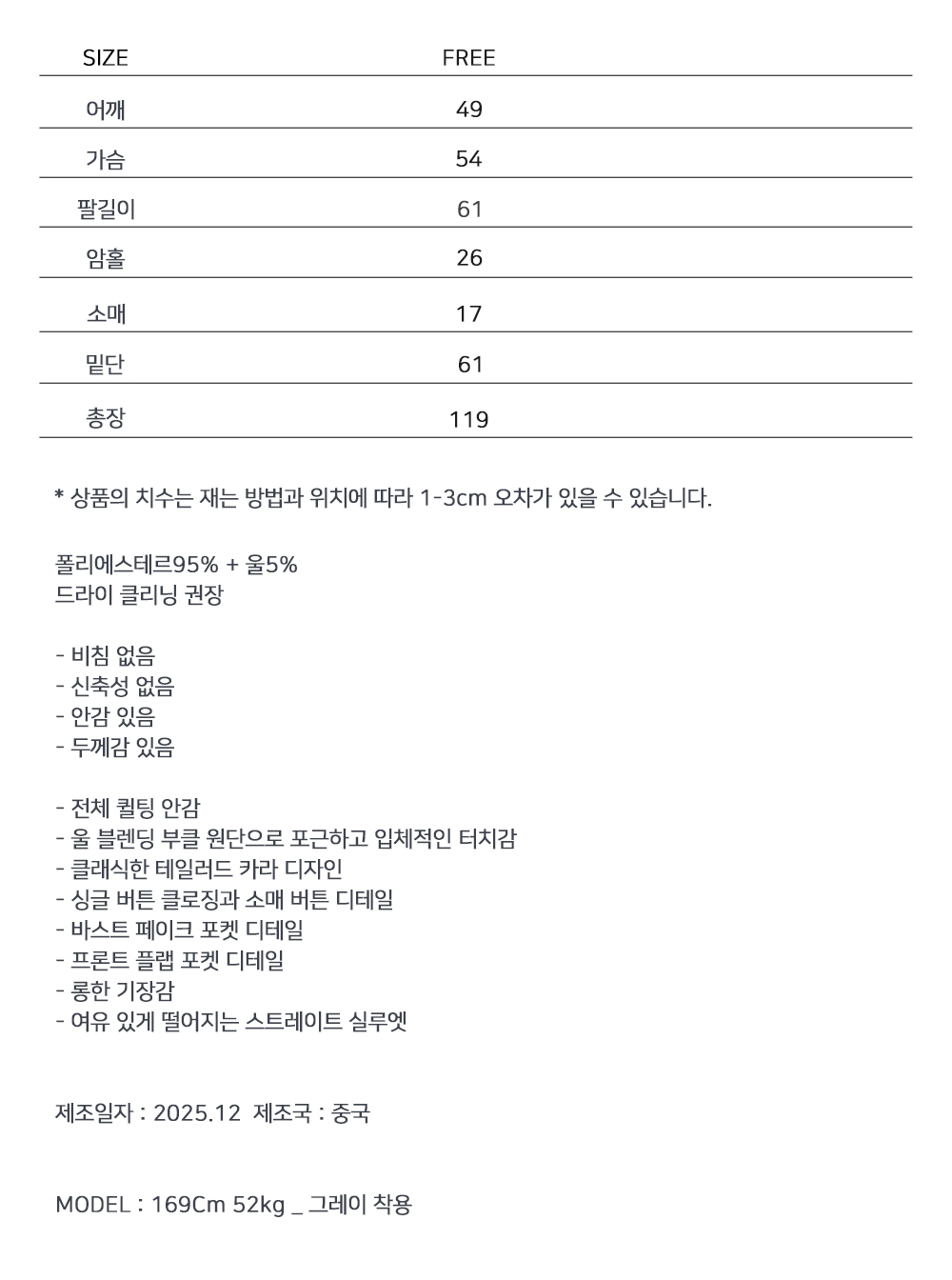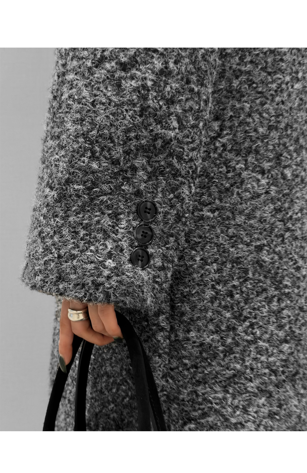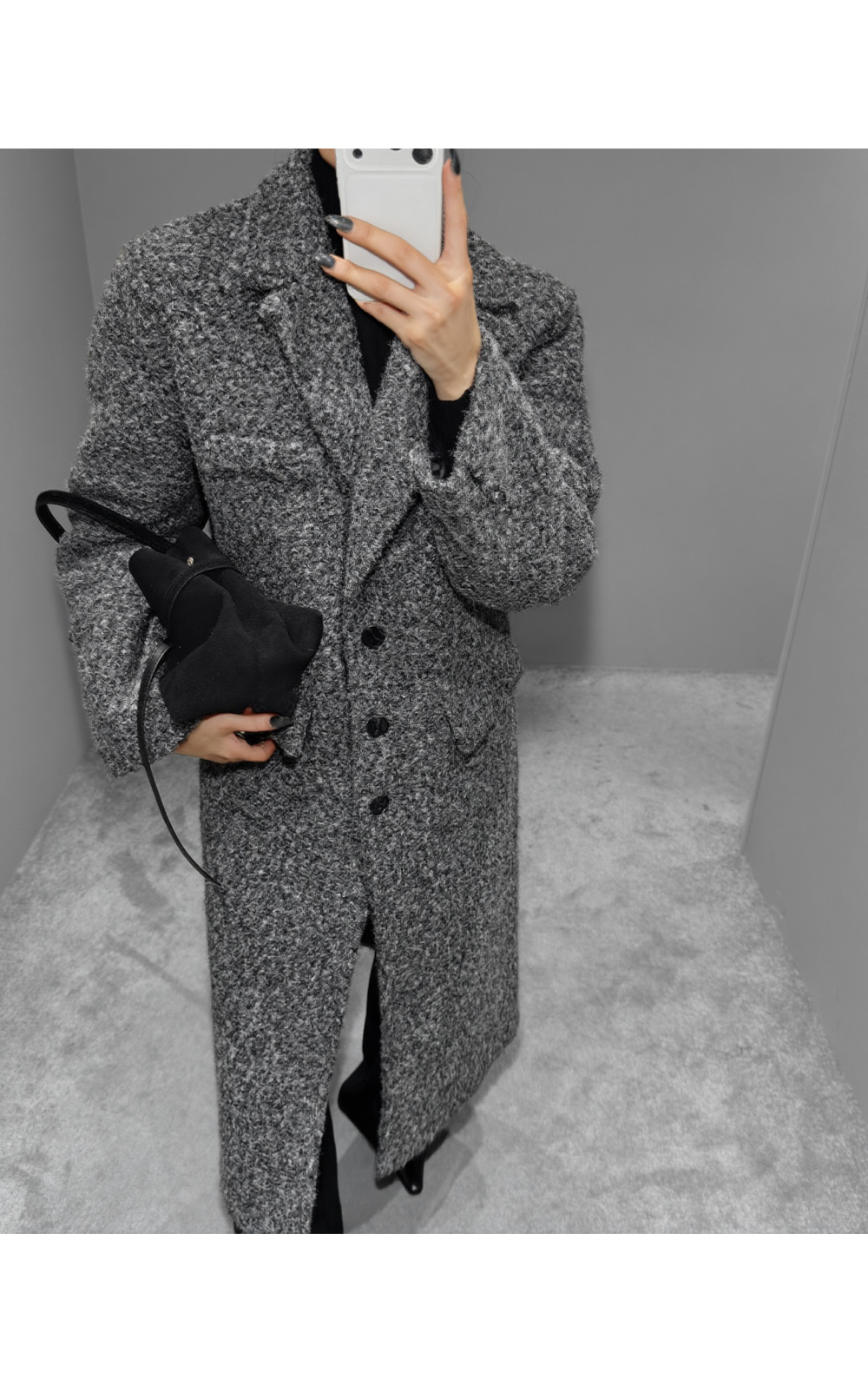 차분한 텍스처와 깊이 있는 컬러감이 어우러진 부클 롱 코트입니다. 표면감이 살아 있는 원단으로 단정하면서도 무게감 있는 분위기를 연출하며, 이너에 따라 데일리부터 포멀한 스타일링까지 자연스럽게 어우러지는 아우터입니다.