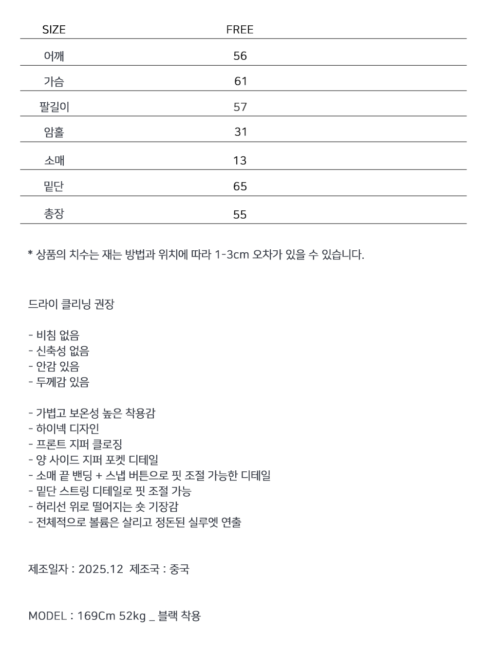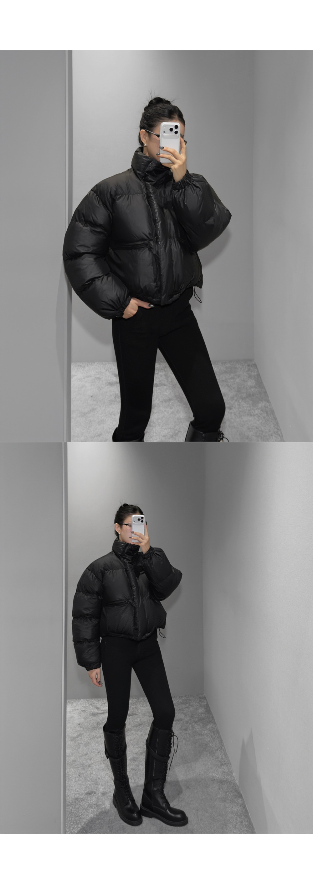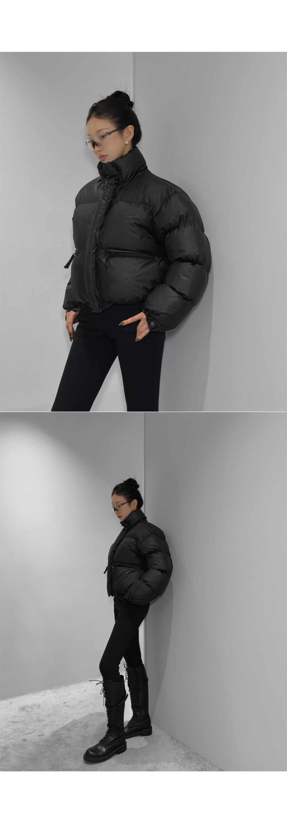 도시적인 무드로 정제된 실루엣이 돋보이는 숏 패딩 점퍼입니다. 볼륨감은 살리되 과하지 않은 충전재로 가볍고 따뜻하게 착용 가능하며, 하이넥 디자인과 미니멀한 디테일이 어우러져 데일리부터 출근룩까지 안정적으로 활용됩니다.
