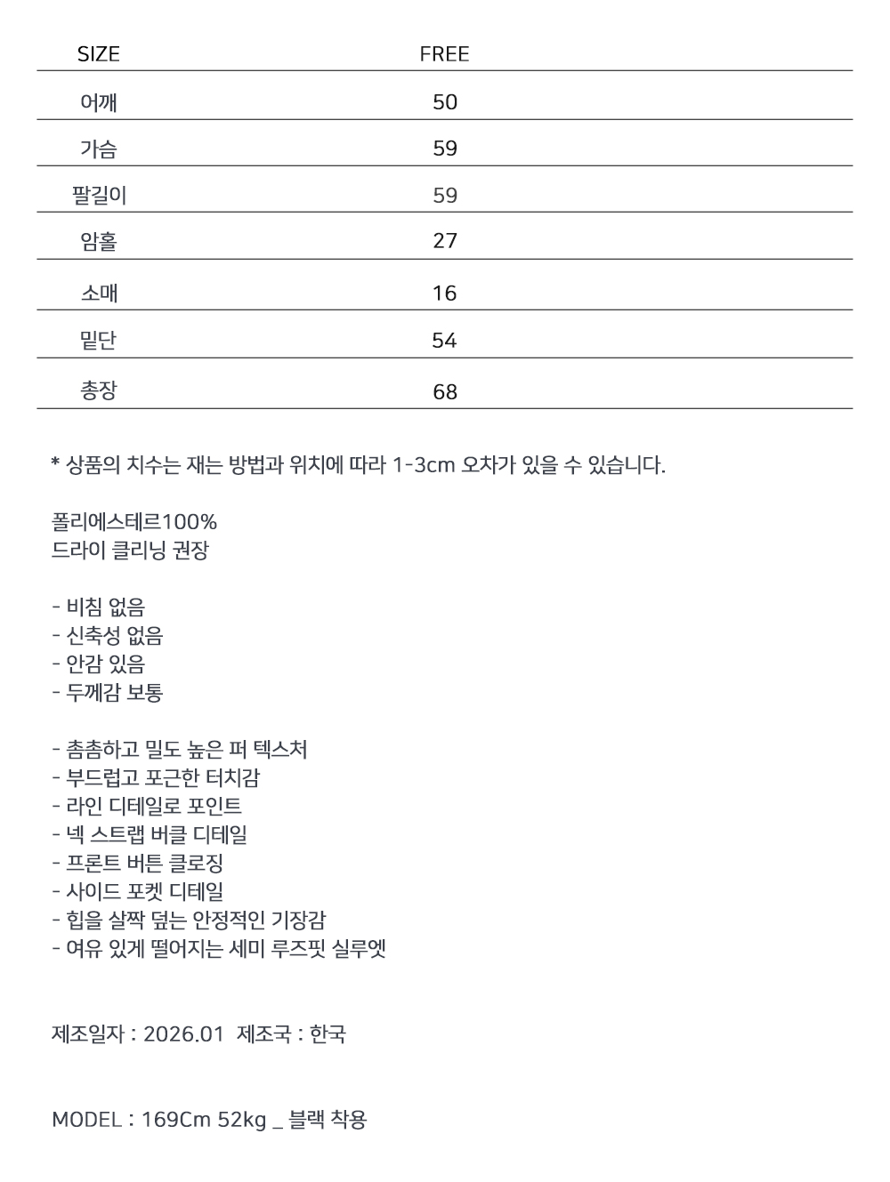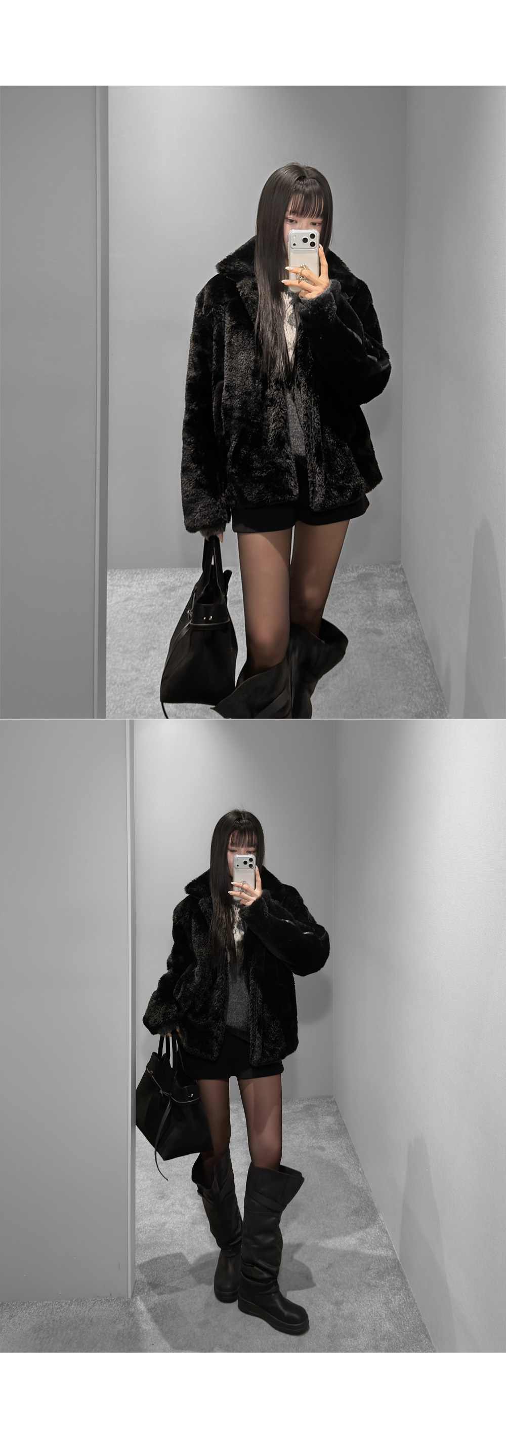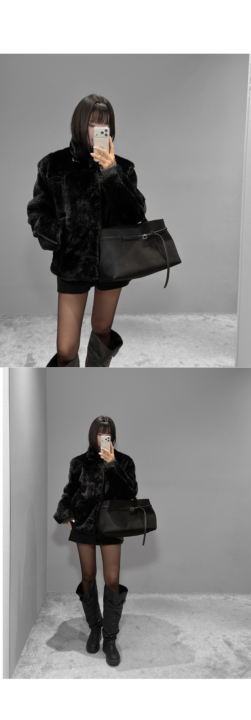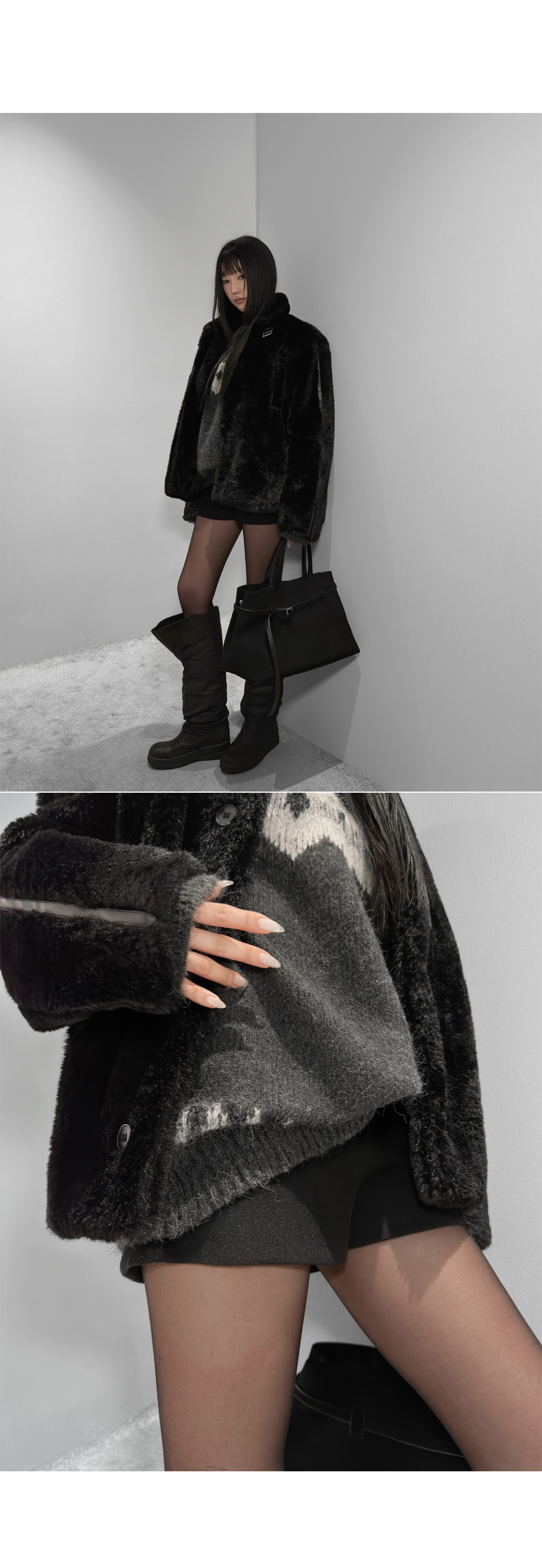 미니멀한 실루엣에 라인 디테일로 포인트를 준 퍼 무스탕입니다. 촘촘하고 부드러운 퍼 텍스처로 겨울 시즌 따뜻하게 착용되며, 과하지 않은 볼륨감으로 데일리 룩부터 시크한 스타일링까지 폭넓게 활용하기 좋은 아이템입니다.