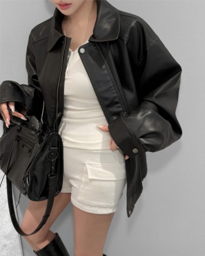 [15% 얼리버드 할인] 클레어 오버핏 레더 블루종