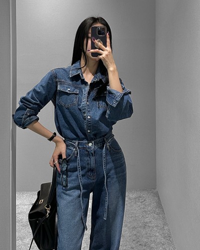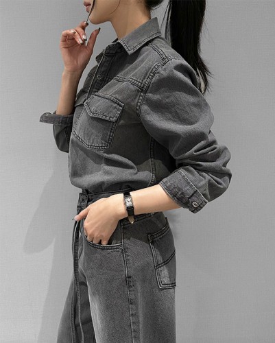니드 포켓 데님 셔츠
