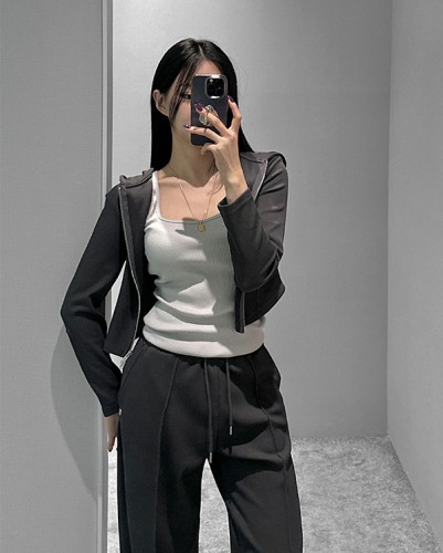 [당일배송] [그레이/블랙] [기모 안감] 골지 슬림 트임 셋업