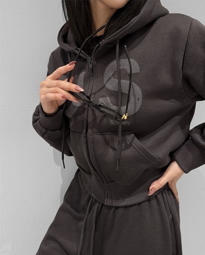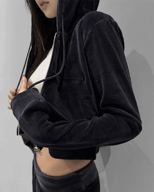벨로아 크롭 후드 집업