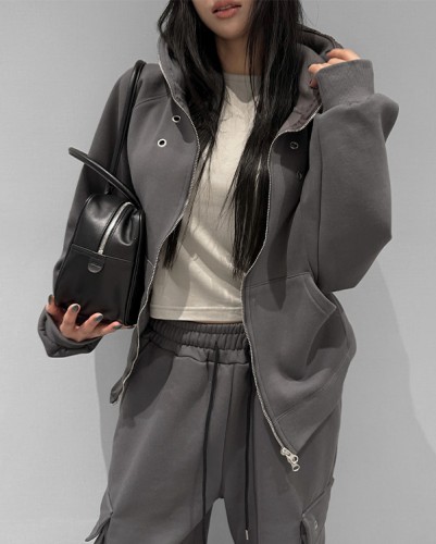 스터드 오버핏 후드집업