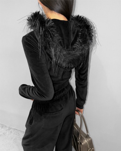 벨벳 비비 퍼 후드집업