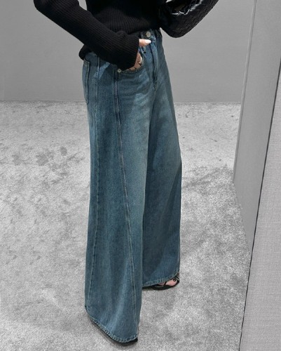 절개 소프트 와이드 데님팬츠
