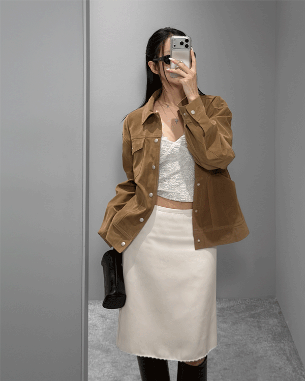 - [당일배송] [베이지] 스웨이드 크롭 자켓