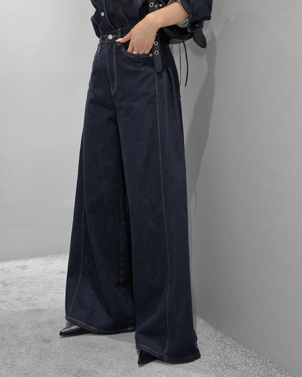 - 논페이드 라인 와이드 데님 팬츠