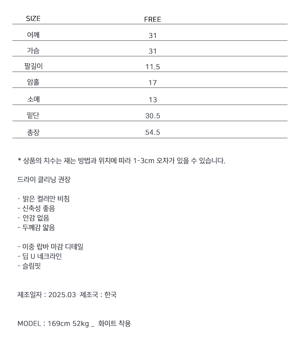 ※ 상품사이즈 치수는 재는 방법과 위치에 따라 1~3cm 오차가 있을 수 있습니다.