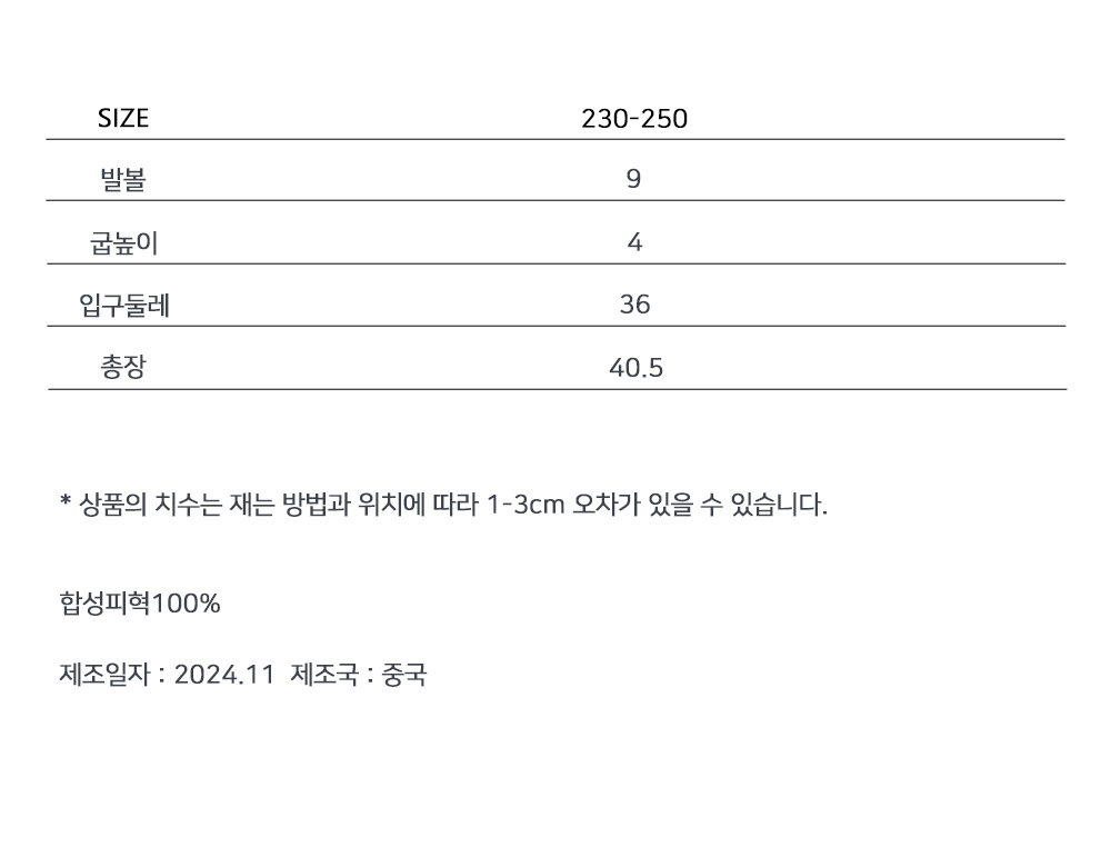 ※ 상품사이즈 치수는 재는 방법과 위치에 따라 1~3cm 오차가 있을 수 있습니다.