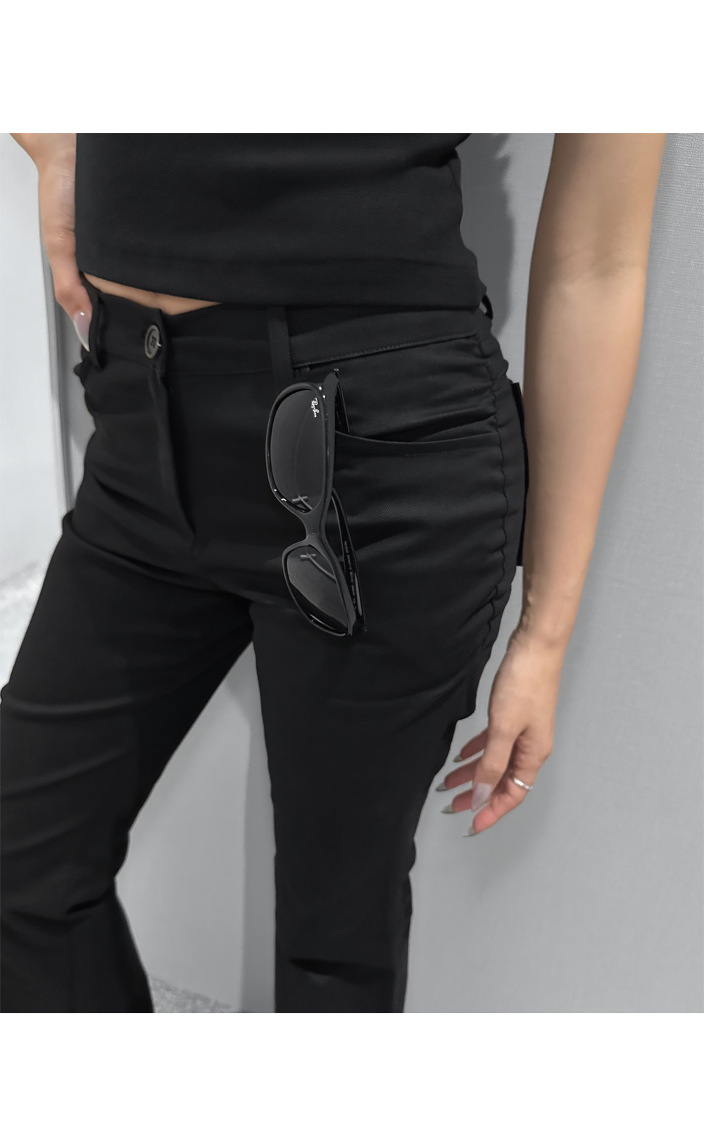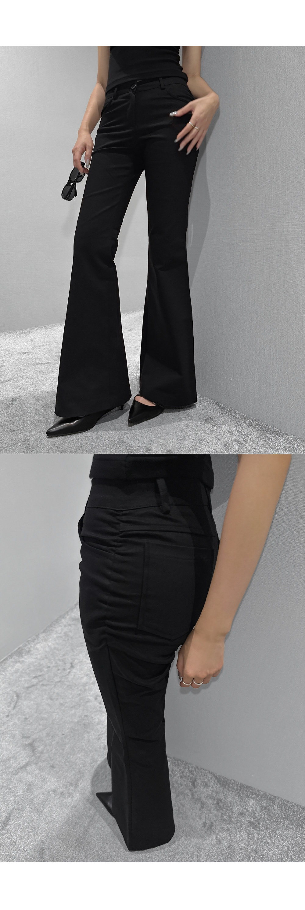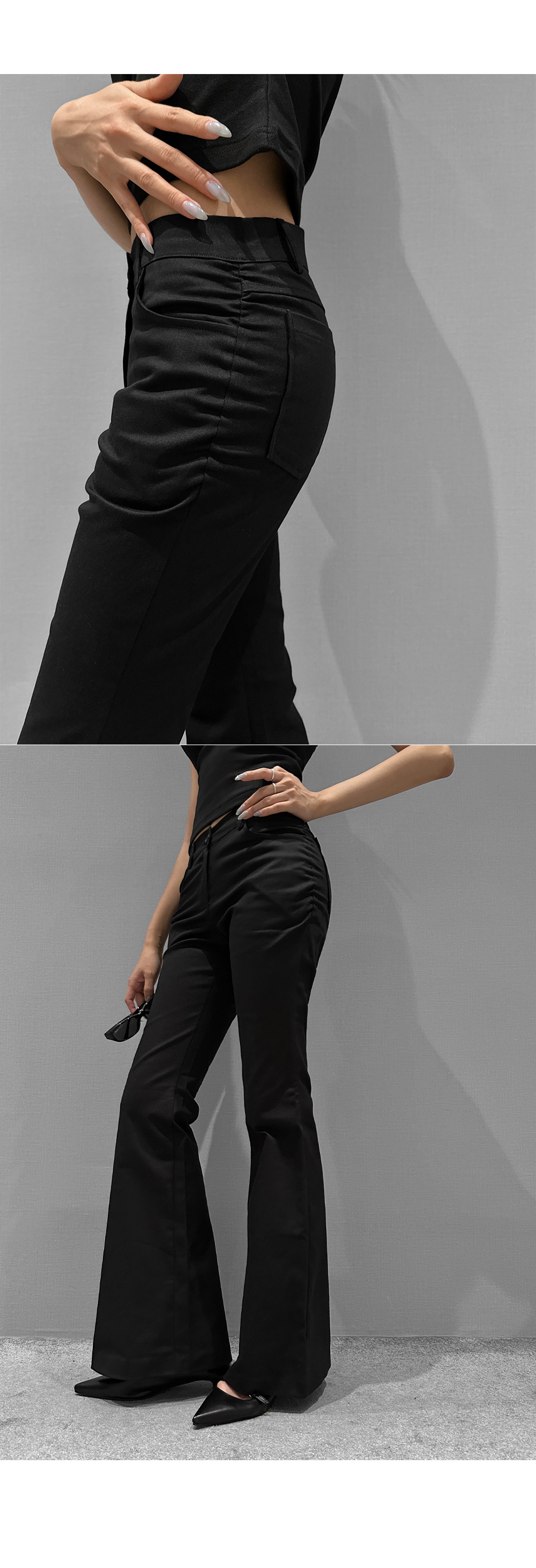 골반 라인에 셔링 디테일을 더해 볼륨감 있는 실루엣을 연출하는 부츠컷 팬츠입니다. 데일리룩부터 포멀한 무드까지 다양한 코디에 활용하기 좋은 팬츠입니다.