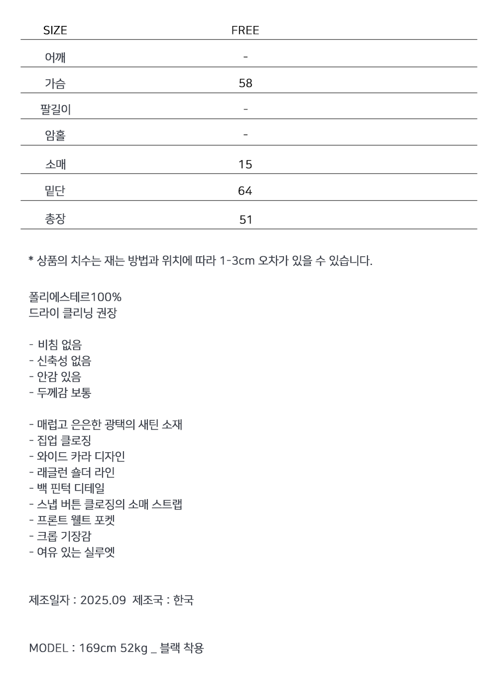 ※ 상품사이즈 치수는 재는 방법과 위치에 따라 1~3cm 오차가 있을 수 있습니다.