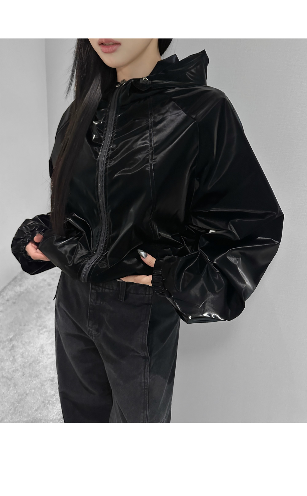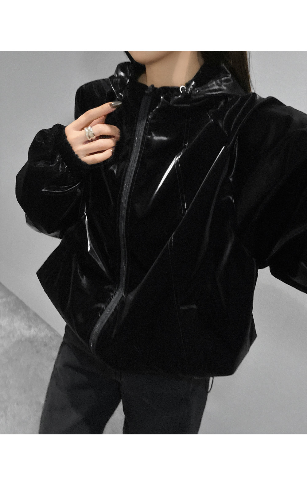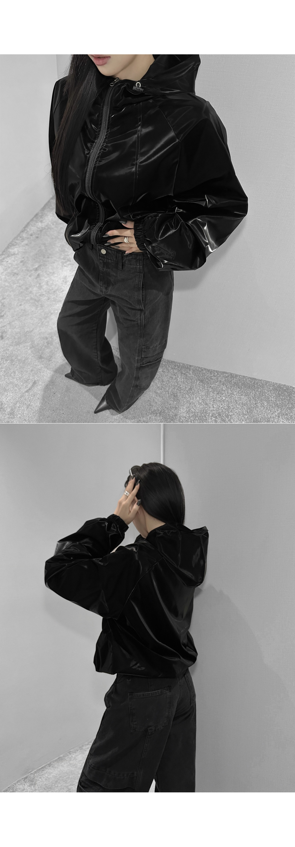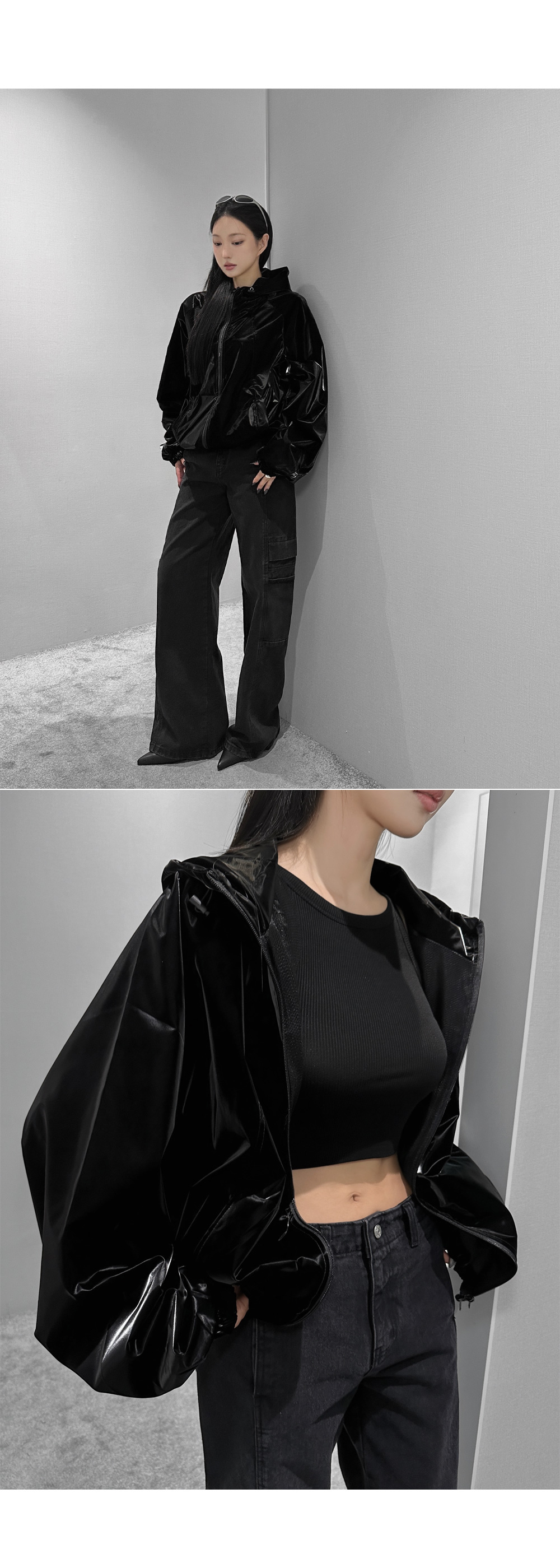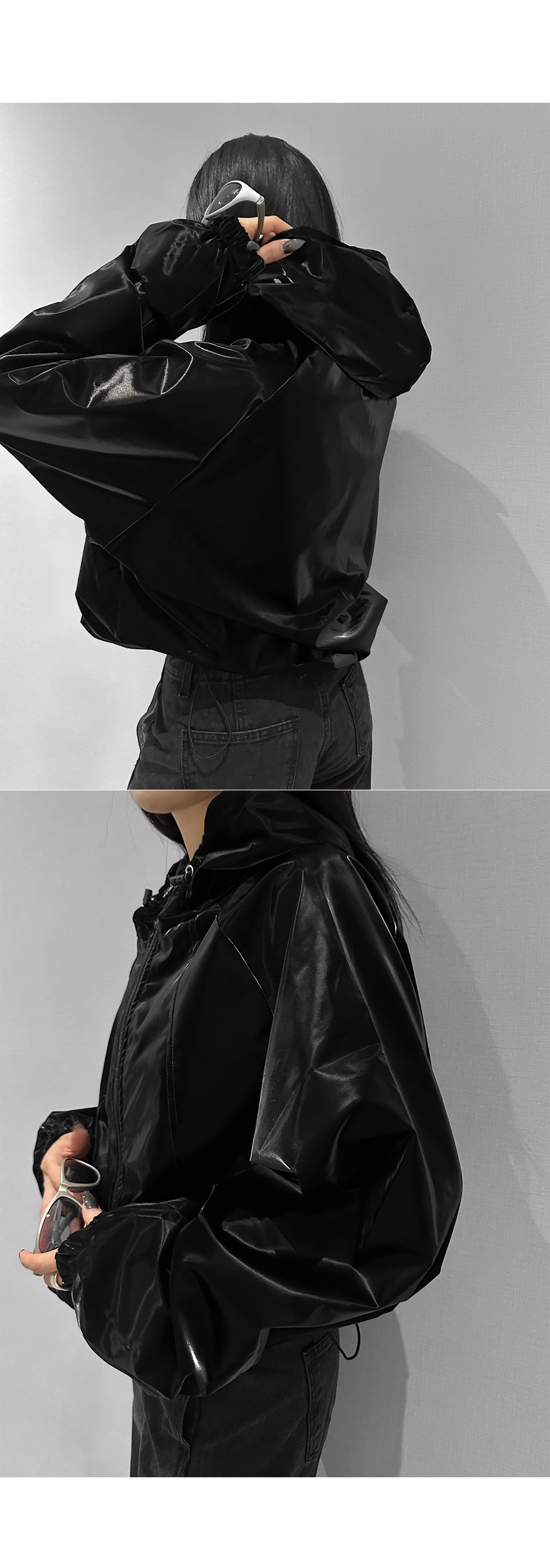 글로시 오버핏 크롭 점퍼
