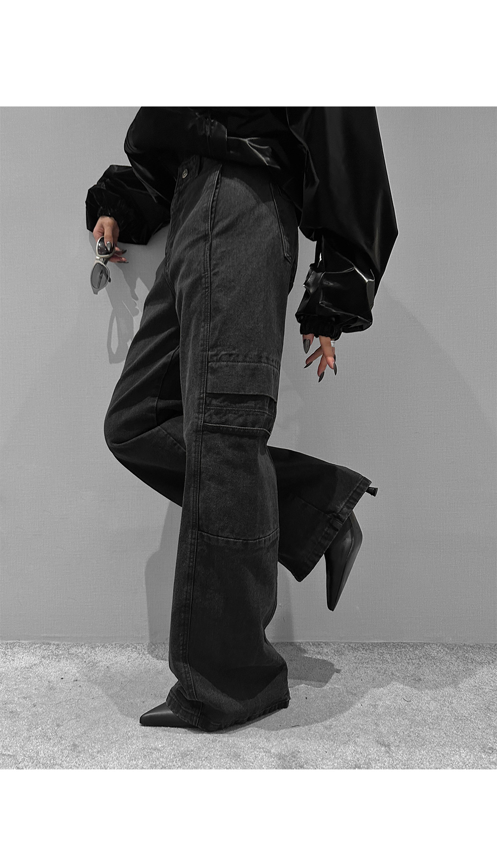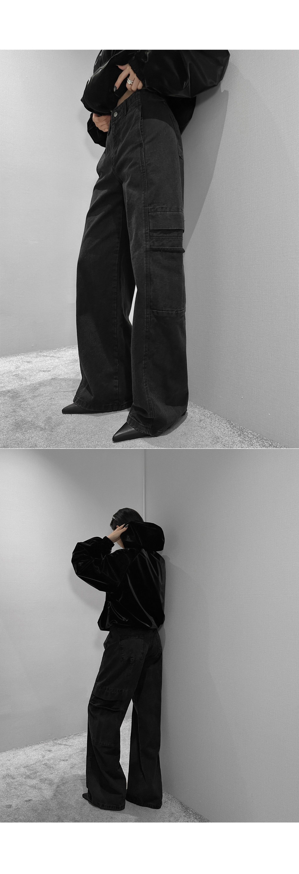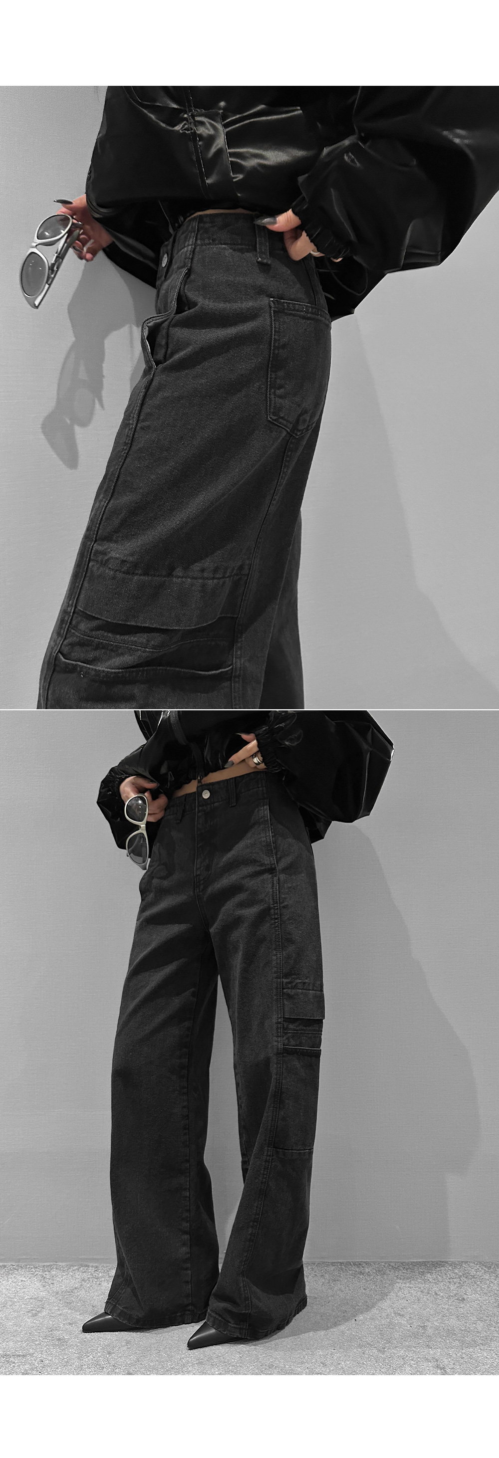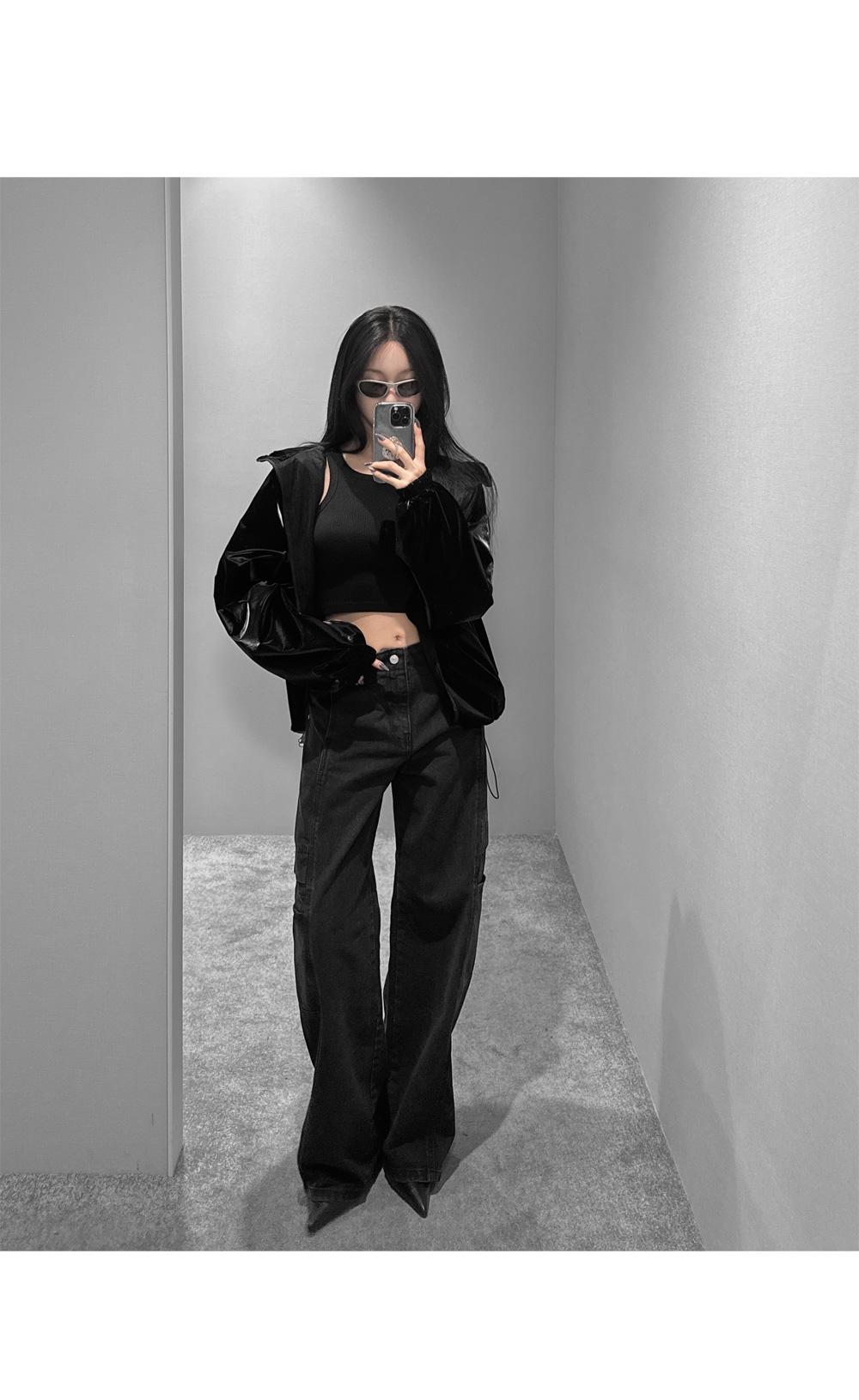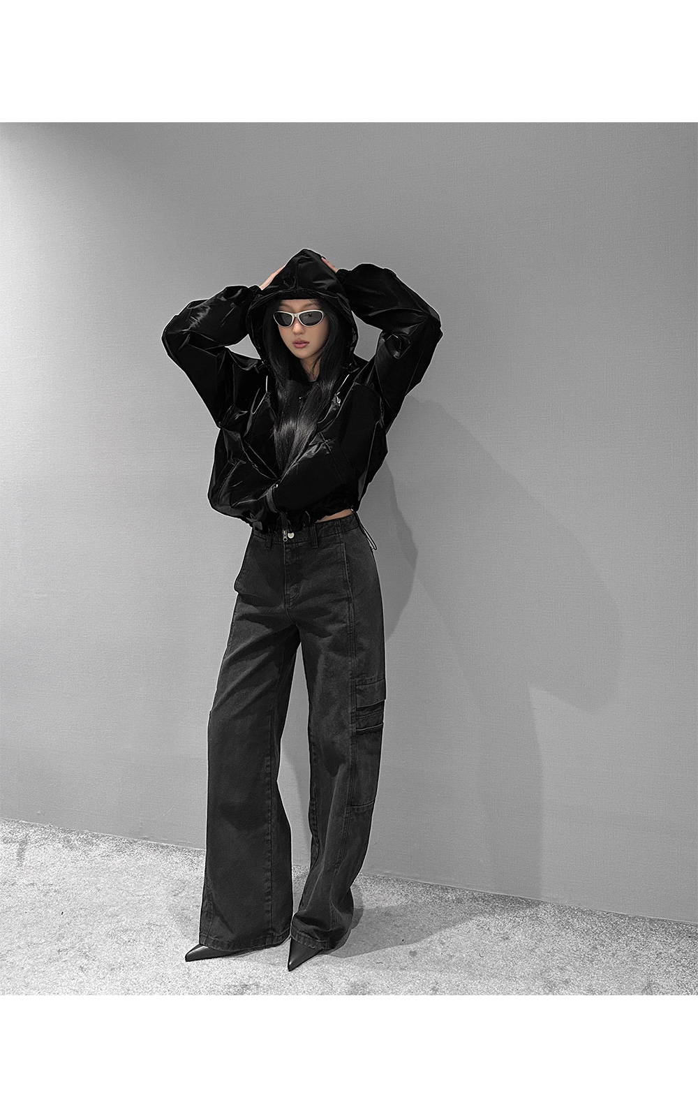 글로시 오버핏 크롭 점퍼