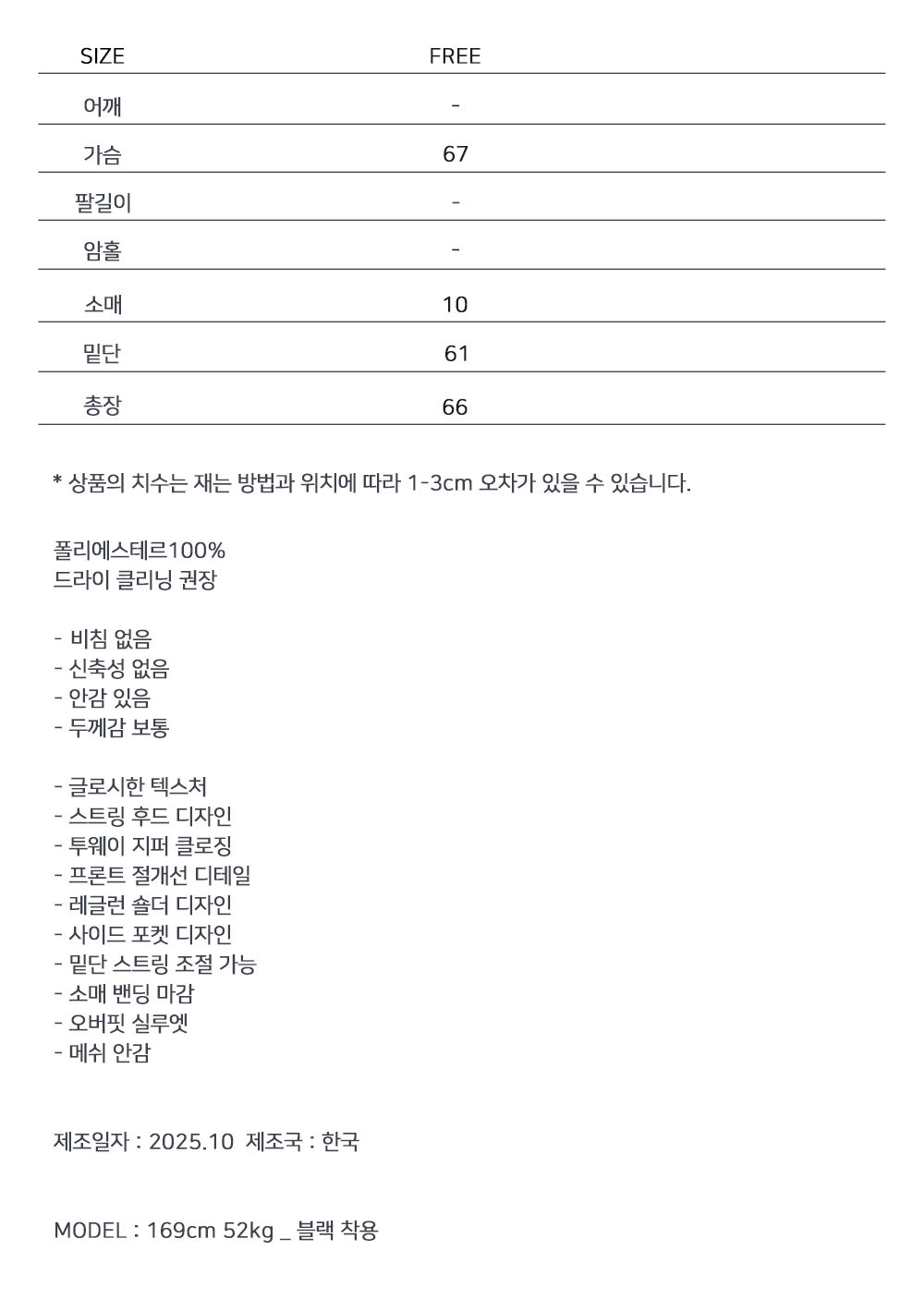 ※ 상품사이즈 치수는 재는 방법과 위치에 따라 1~3cm 오차가 있을 수 있습니다.
