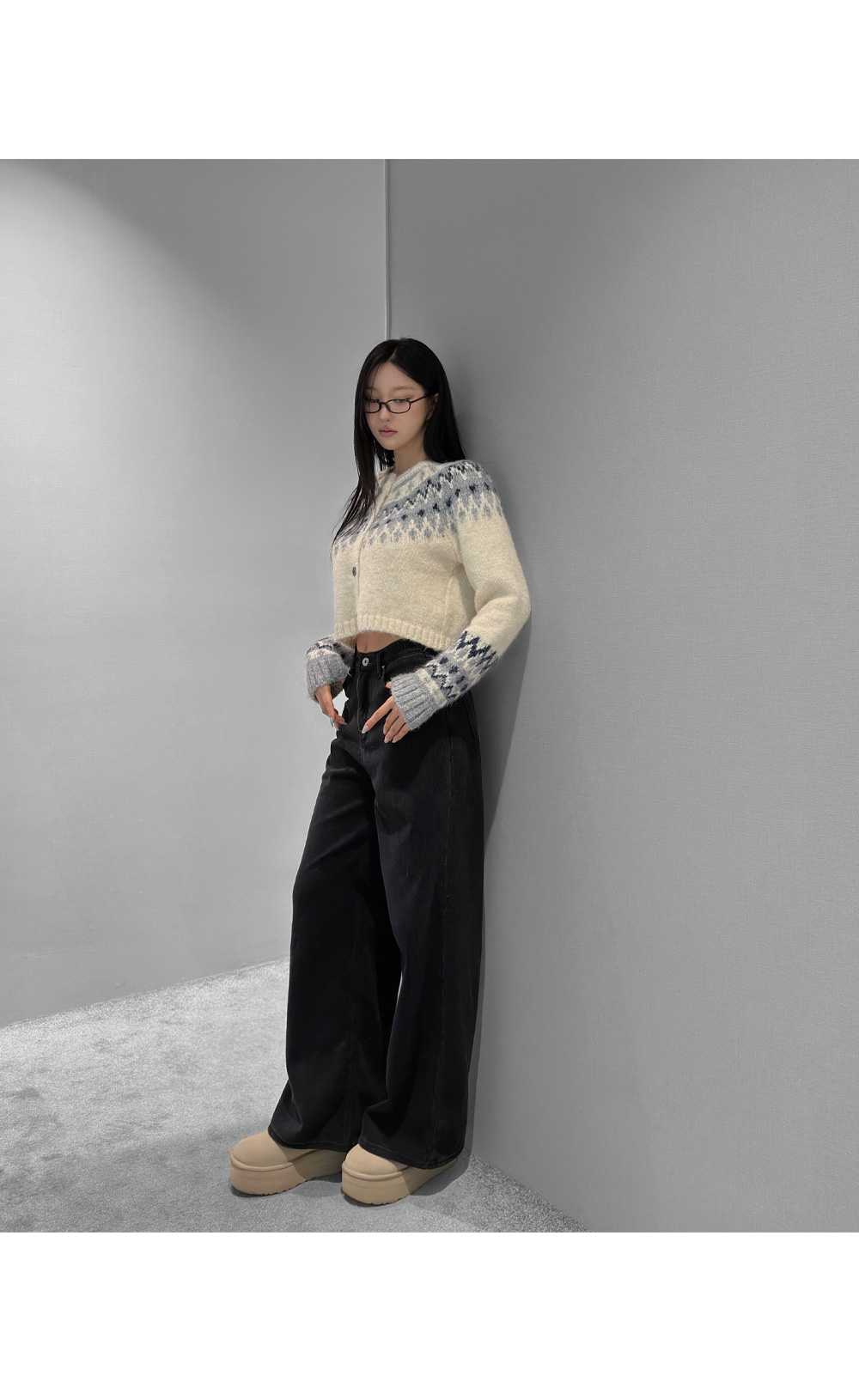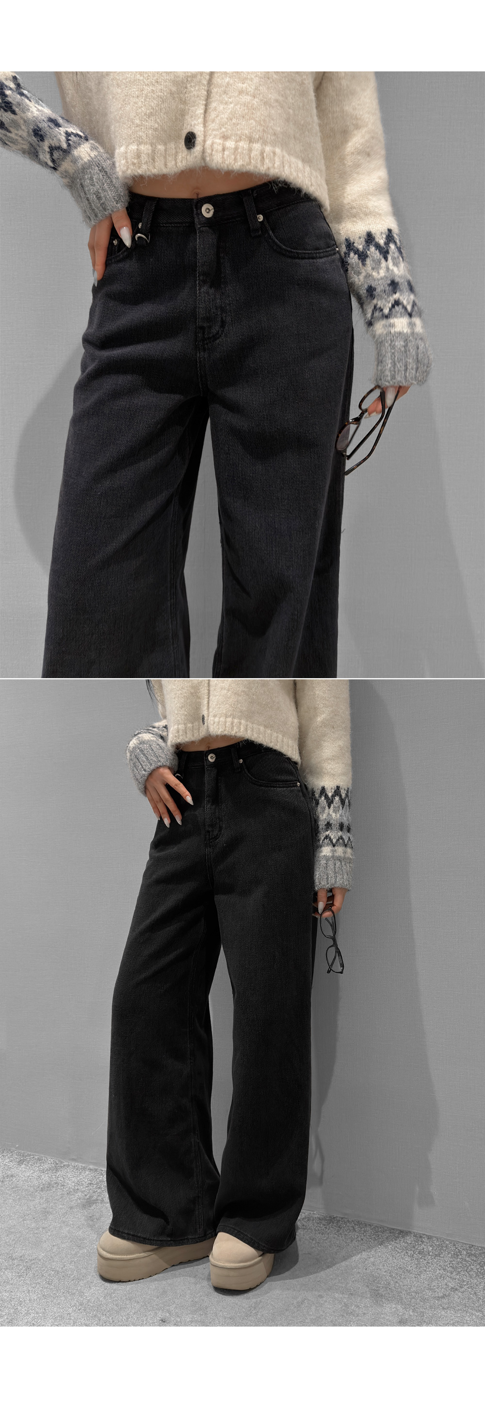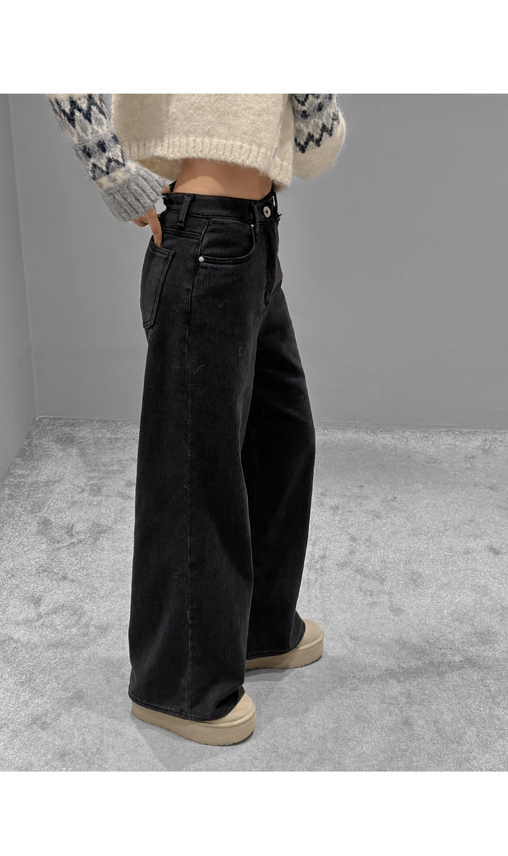 ALL > BOTTOM > DENIM > [기모 안감] 블랙 셔닐 와이드 팬츠