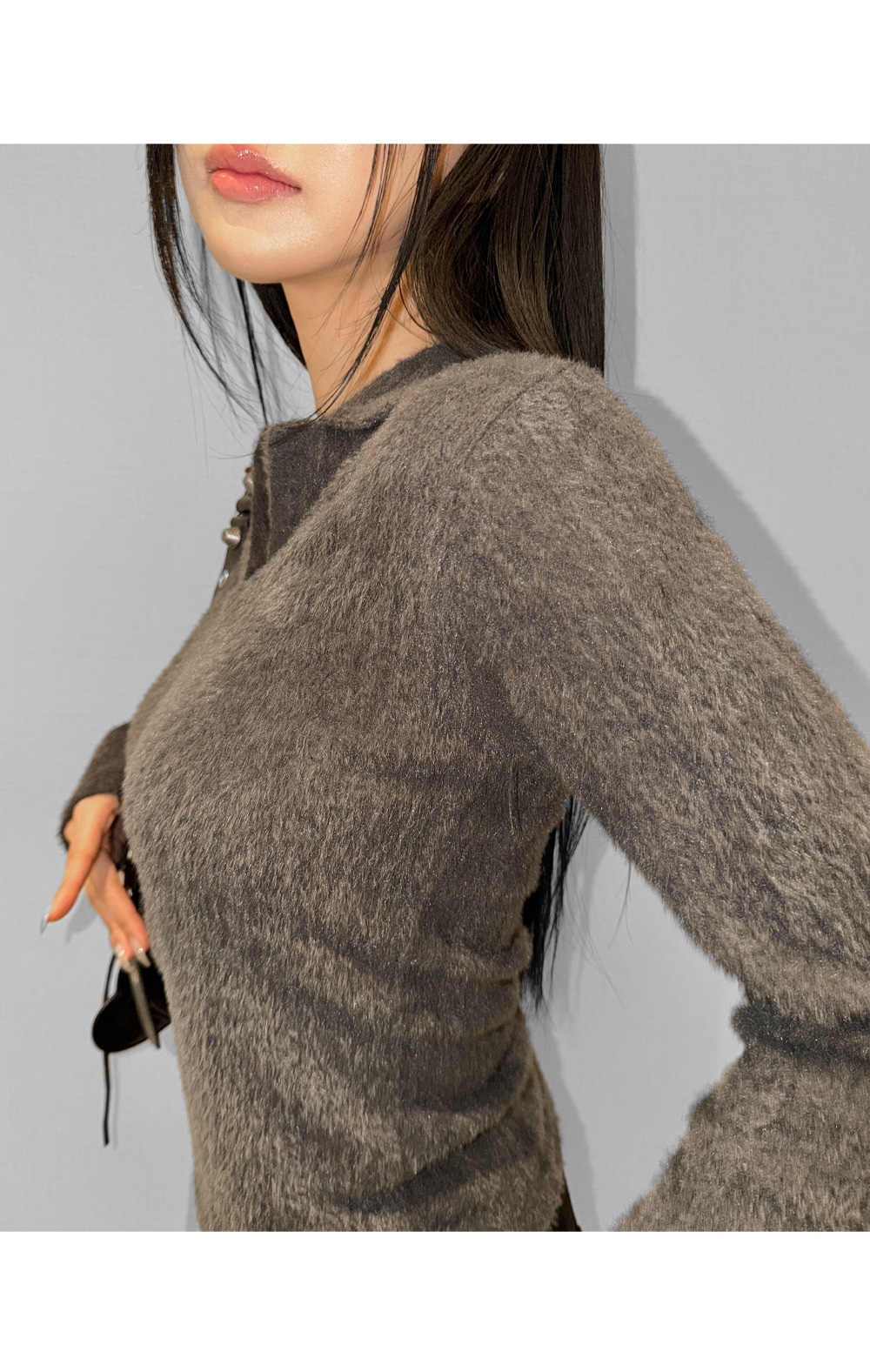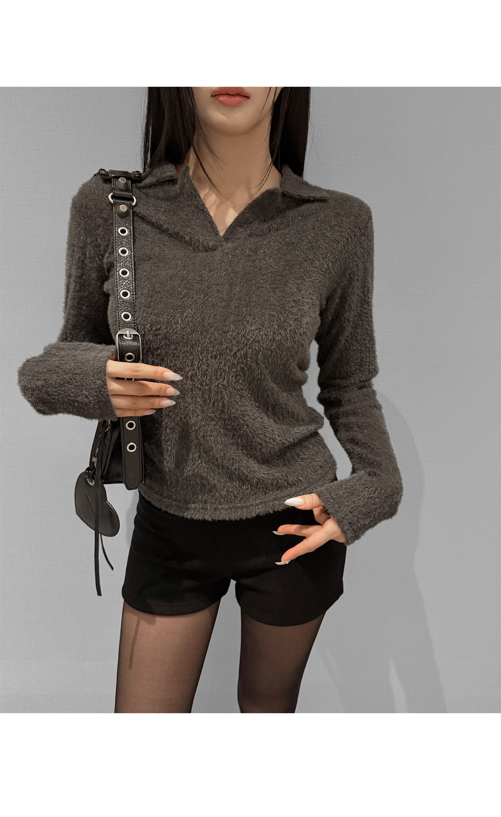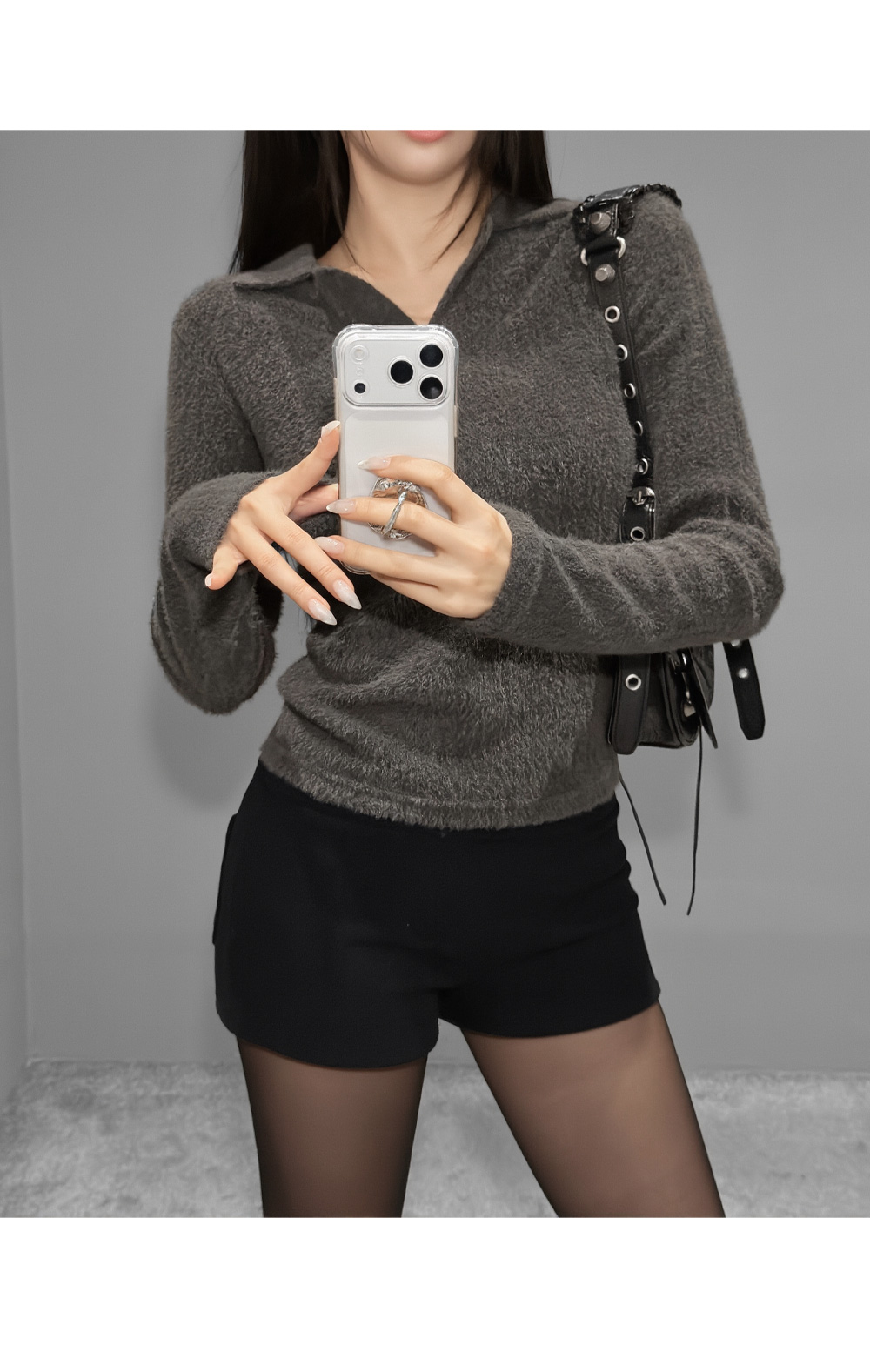 포근한 텍스처와 단정한 카라 디자인이 어우러진 카라 티셔츠입니다. 헤어리한 표면감이 은은한 포인트가 되어 단독 착용만으로도 스타일이 완성되며, 바디에 자연스럽게 밀착되는 실루엣으로 이너·레이어드 모두 활용도 높게 연출할 수 있습니다.