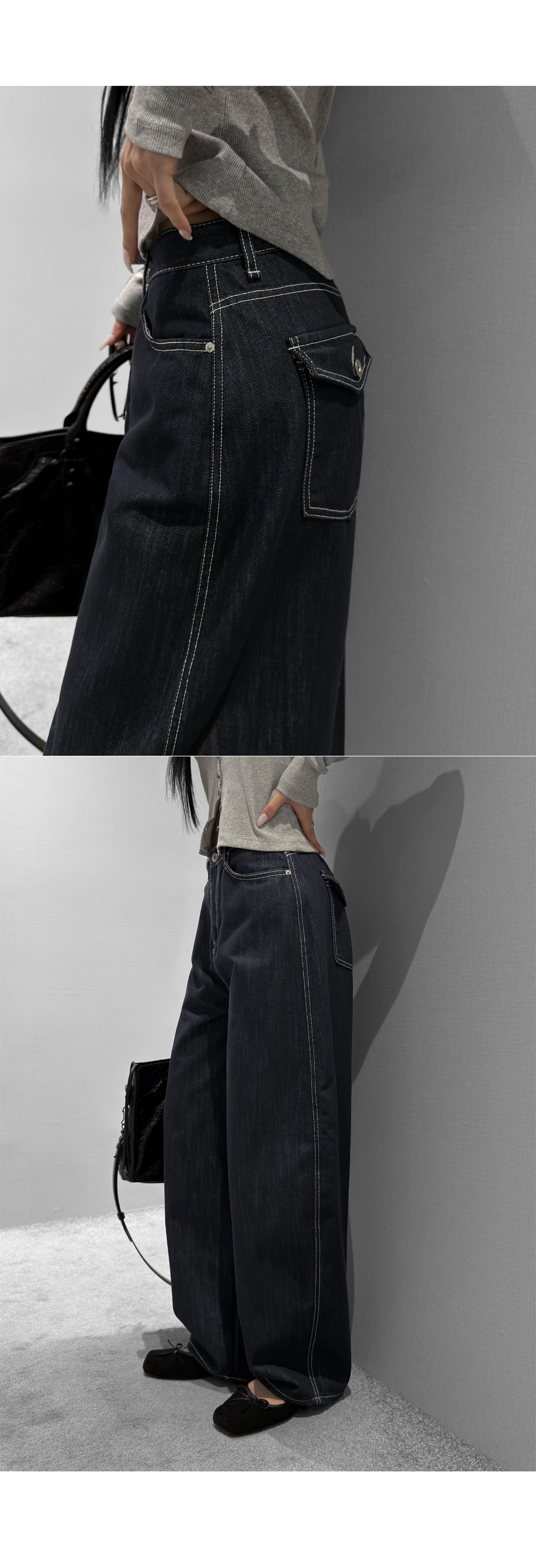 벌룬 포켓 와이드 데님 팬츠